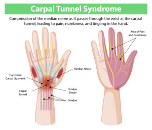 Carpal tunnel syndrome (CTS) is a common condition that affects millions worldwide, often causing numbness, tingling, and pain in the hands and wrists. It occurs when the median nerve, which runs from the forearm into the palm, becomes compressed or irritated as it passes through the carpal tunnel — a narrow passageway in the wrist.  Passing through this same passageway are many tendons that supply mobility and strength to the hand allowing for flexion, extension or gripping activities.  As these tendons become inflamed due to overuse, they swell, compressing the median nerve.